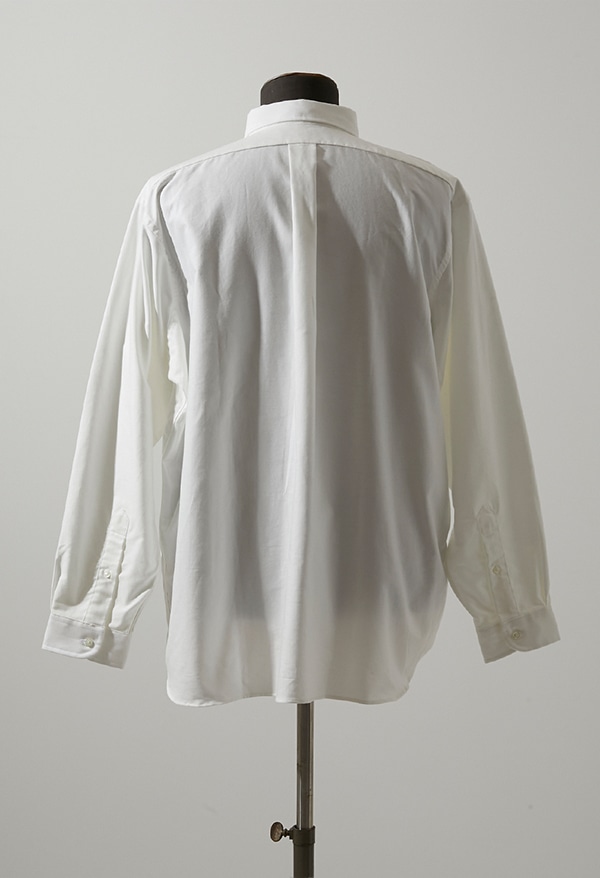 近年のオーバーサイズ人気で生まれたOVERSIZED FITをに別注したモデル。ゆとりのあるボディに小ぶりな襟、カフスでバランスを取りました。生地は、一般的なオックスフォードより肉厚で褪せた色味の、REGATTA OXをセレクト。WHITEは漂白せずピマコットン本来の生成りがかった雰囲気が特徴です。ベーシックな良さを残しつつ、今らしいアイテムになっています。