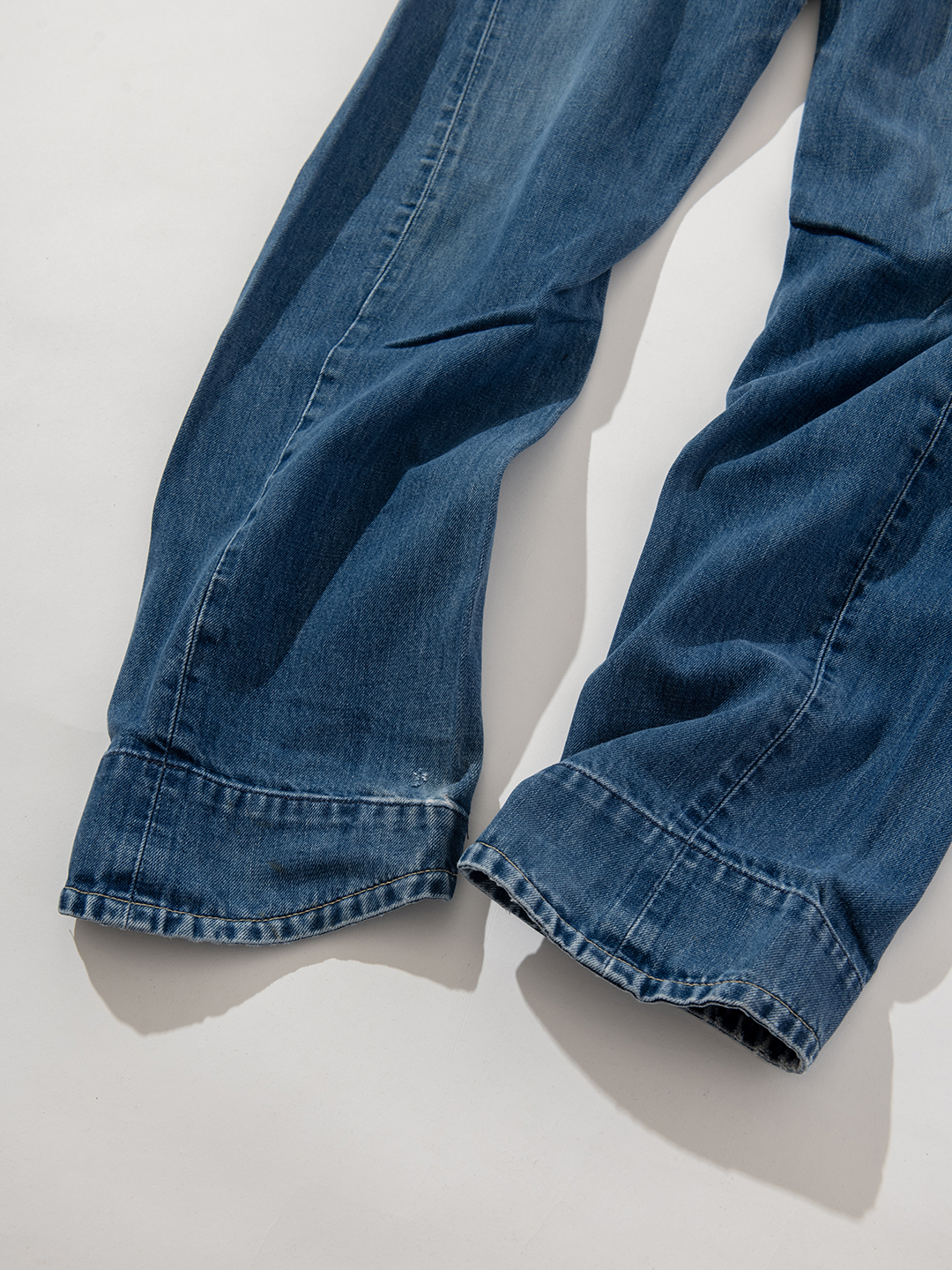 ヨーロッパ企画のプリントシャツです。襟元は軽いデニム素材の切り替えになっており、全体はペイズリー柄やスカーフに使用されるようないろいろな柄がキルトやパッチワークされたようなデザインとなっています。ボタンもウエスタンをイメージしてなのかパール調のボタンをスナップ式ではなく通常の着き方で配置されています。企画はヨーロッパと思われますが、タグにはAMERICAと記載されておりヨーロッパから見たアメリカのイメージで作られた物と思われます。
