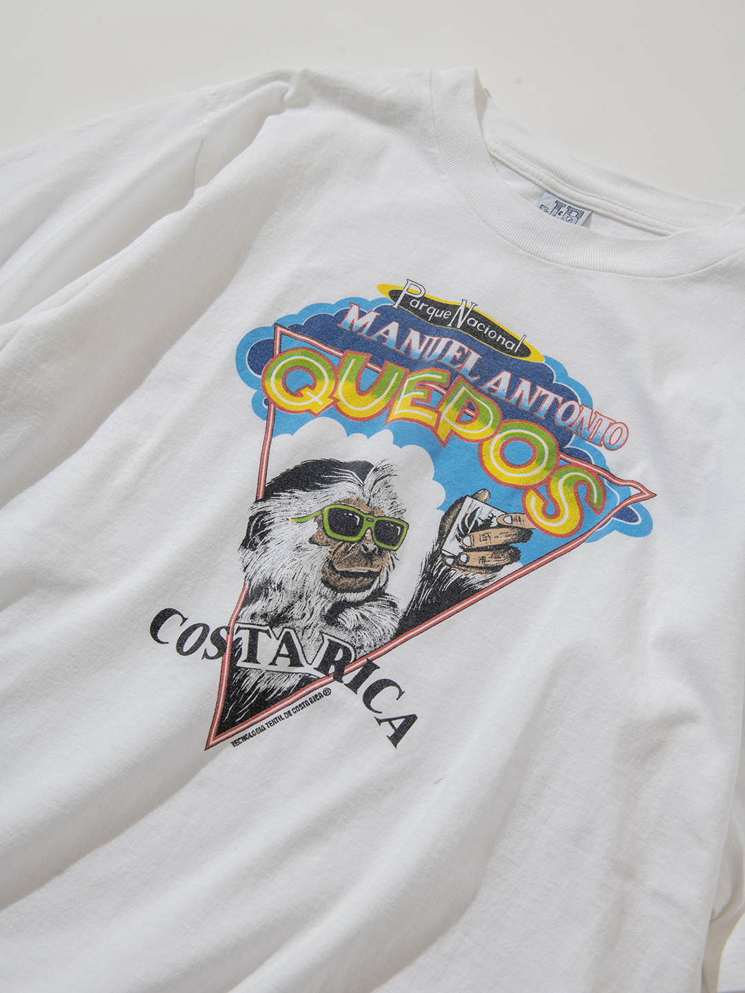 コスタリカにあるマヌエル アントニオ国立公園のプリントTシャツです。自然豊かな海沿いのジャングル付近にあり、熱帯雨林もありビーチもありという国立公園です。ナマケモノやサルなどの野生動物も見ることができる観光地のスーベニアTシャツです。