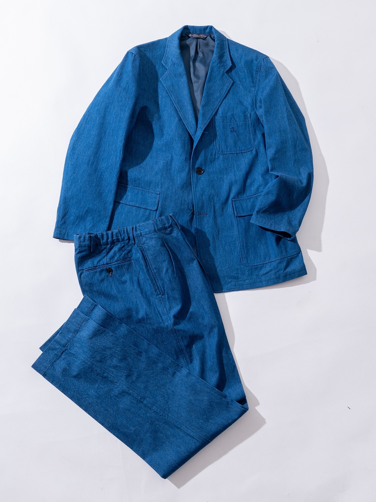 クラシックなテーラーリングを基調に、日本の確かな縫製技術で構築したデニム素材のセットアップです。