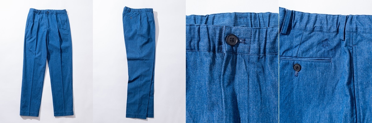 着用を重ねることで色味と風合いが深まり、時間とともに表情を変えていきます。デニムとは思えない柔らかな肌触りも特長です。