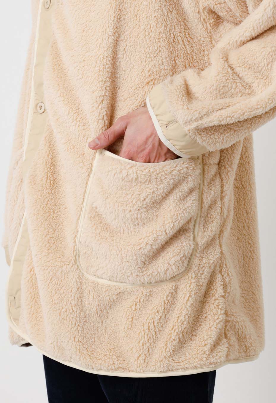 軽くて柔らかく、保温性の高いボアフリース生地を両面に使用しています。